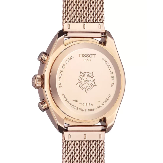 - Carnation gold-tone PVD 316L stainless steel; sapphire crystal